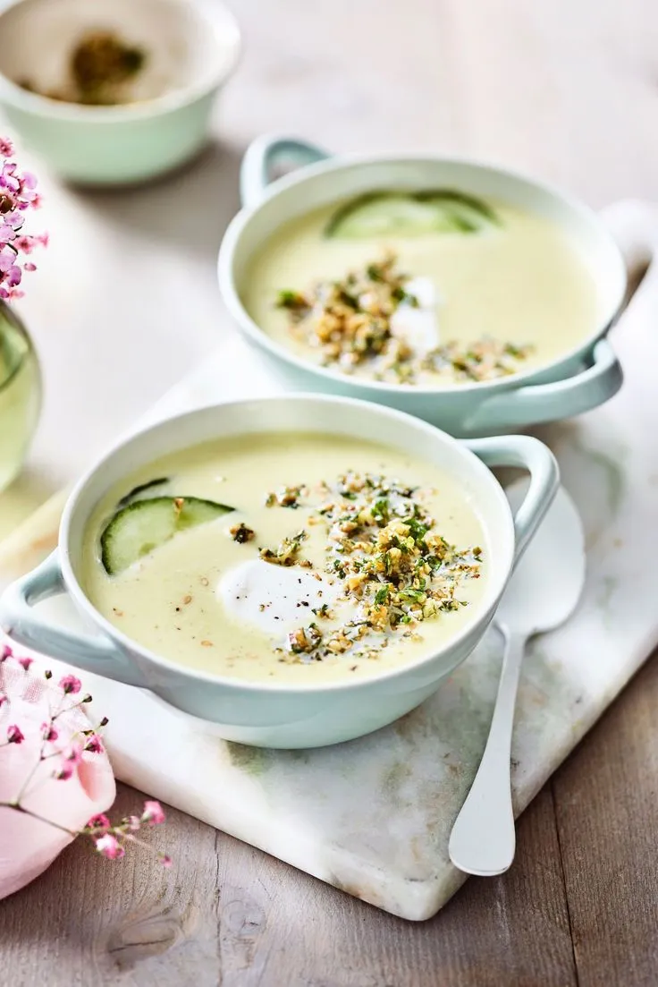 Komkommersoep met Griekse yoghurt en zadencrumble
